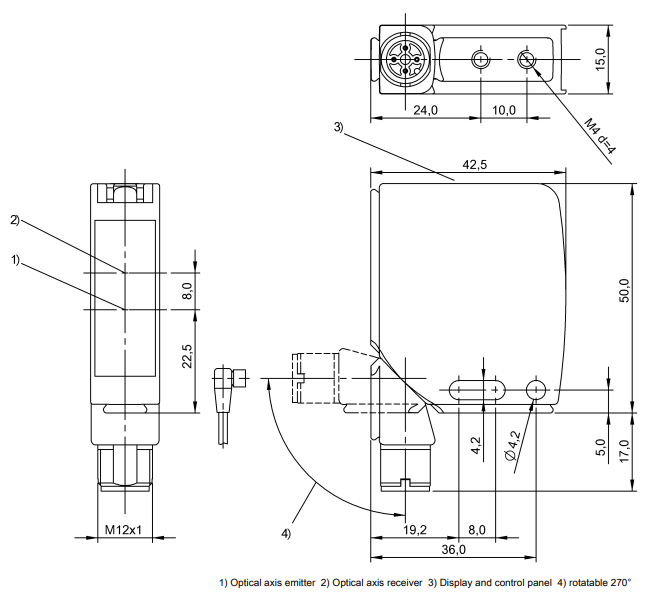 - Kết nối: Đầu nối, M8 x 1 Ren, 4 chân